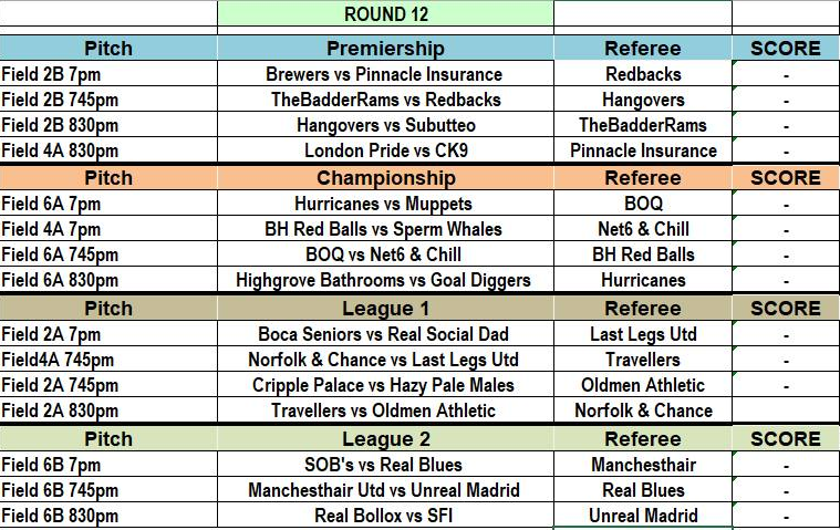 2022 Masters Fixtures & Info Sheet